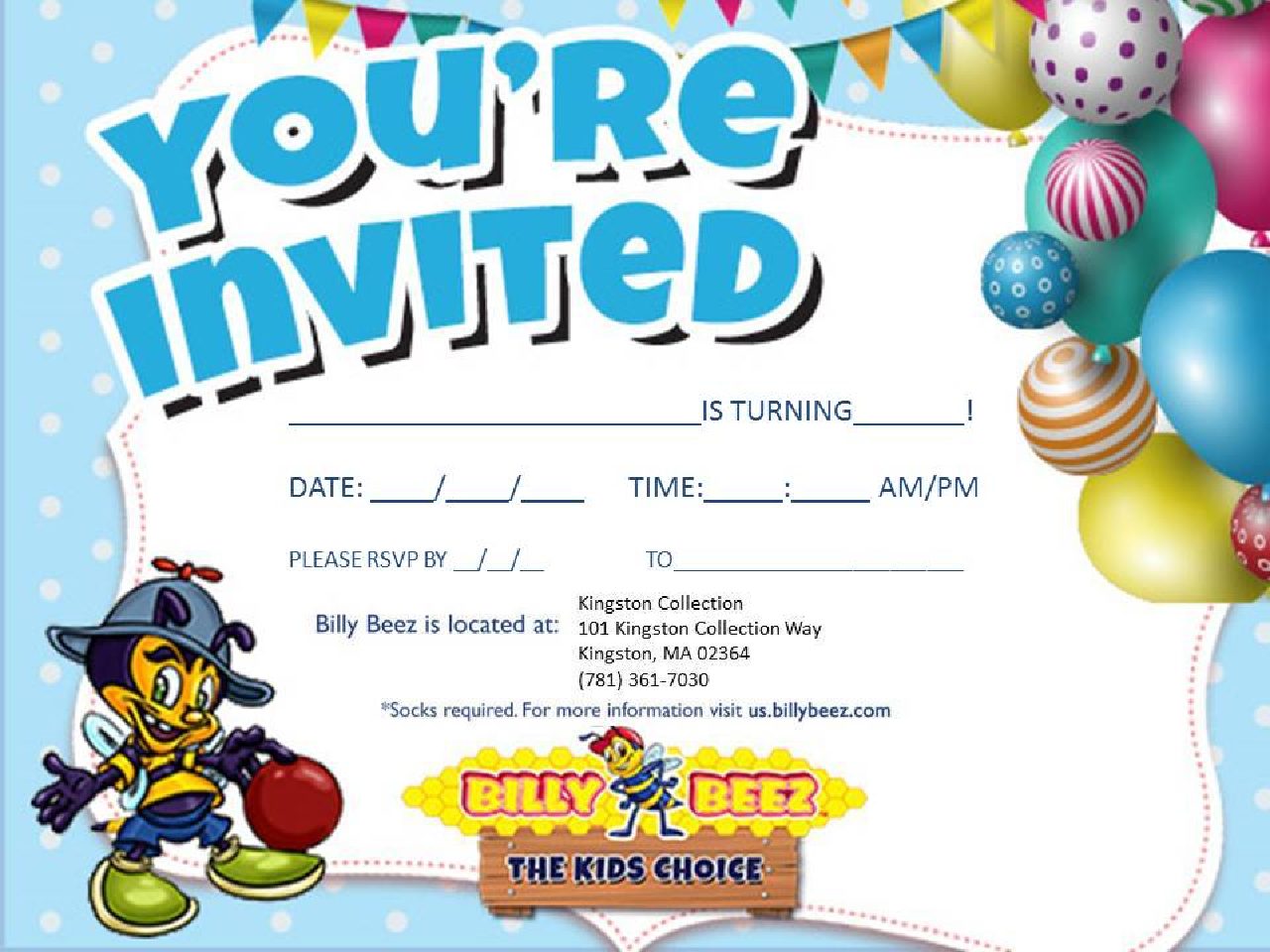Book Your Party at Kingston Collection - Billy BeezBilly Beez Celebrate your birthday at Billy Beez! Party packages available including all day access, pizza, cake, decor and a personal party host. ... Kingston Collection . Sign up for our newsletter. Exclusive offers, new park openings, fun facts for a balanced life and more!